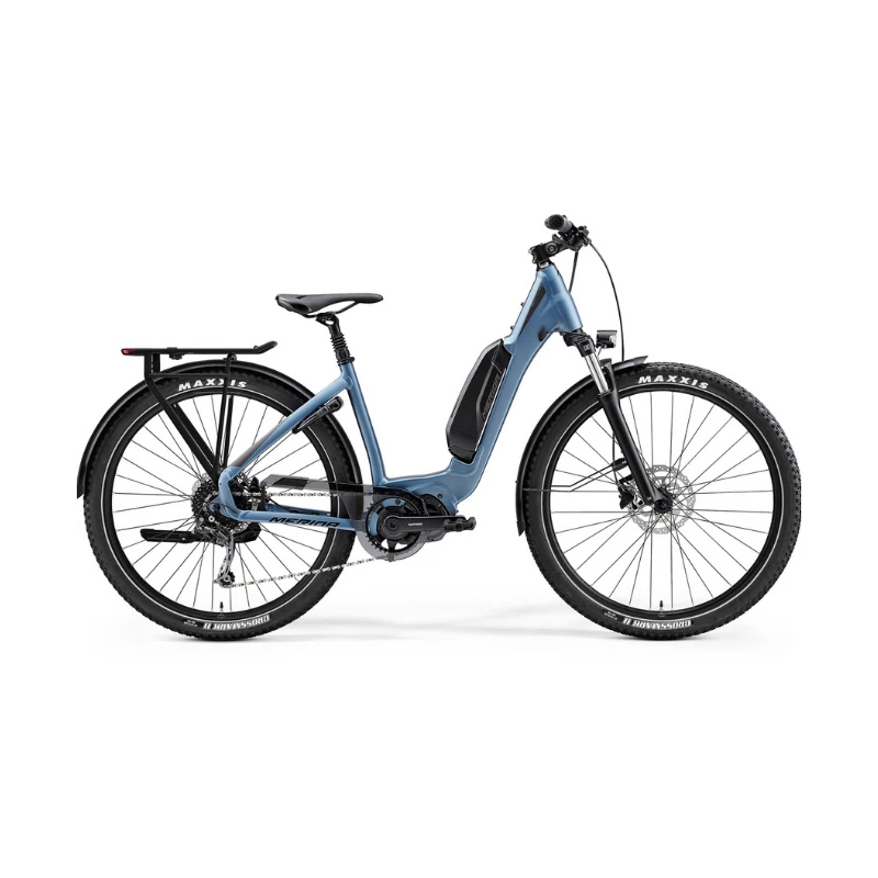 The eSPRESSO CC come fully equipped with fenders, kickstand, carrier and lights. Ready for any outing you can think of. The Shimano mid-mounted motor, in combination with the forged motor bracket provides one of the lowest step-through heights in the market. Merida features internal cable routing on all models. Cables are routed through the frame, entering and exiting through smooth sockets. Only a clever system for our internal guiding and fixing guarantees reliable and rattle free routing, whilst the cables are protected from moisture and dirt and gives the bike a cleaner look. The decision to use 650B wheels with 2.25″ off-road tread pattern for our CC models is not just a design feature but has more practical reasons. To add big volume tyres to an e-bike provides increased comfort but also extra traction and therefore more safety reserves. Small and even bigger bumps can easily be rolled over, and a big volume tyre provides more puncture protection compared to a narrow one.