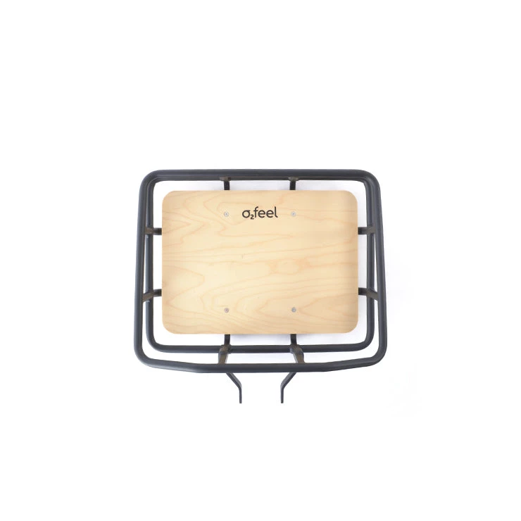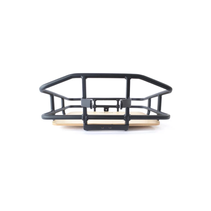 This front basket, with its treated birch wood base framed by matt black 6061 aluminium bars, is both attractive to look at and practical.