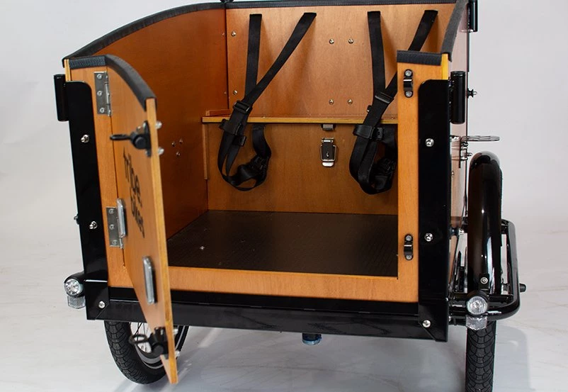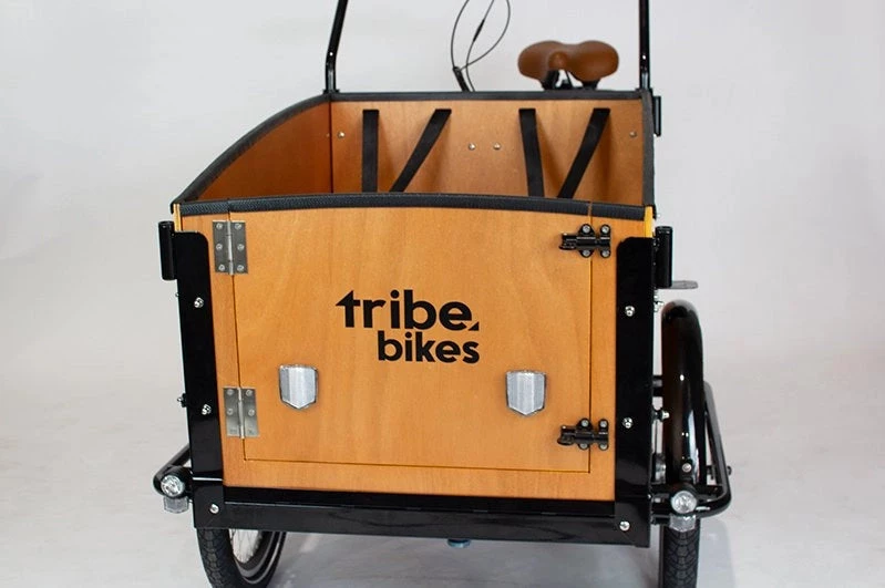 Replace the front panel on your cargo box with a front door, allowing you to get dogs, kids or adults in and out of the bike with ease!